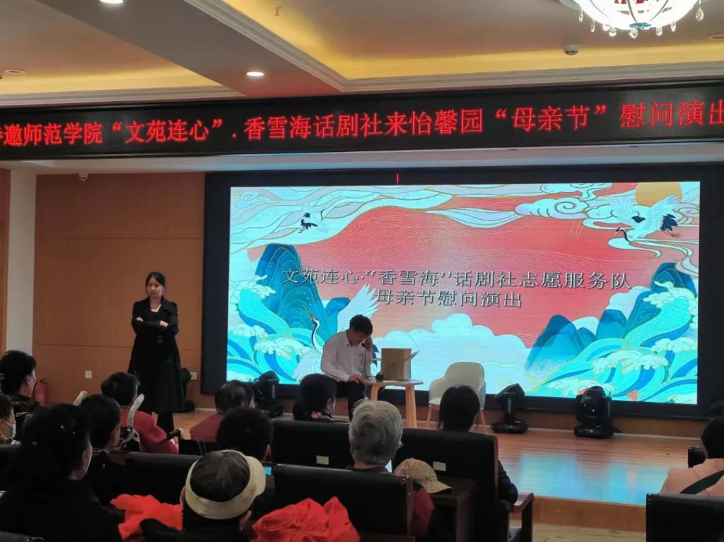为推进大学生社区实践教育深入开展,树立孝老敬亲的良好道德风尚,丰富同学们的业余生活,文学院文苑连心·香雪海话剧志愿服务队于512日下午14:00在怡馨园社区开展“话剧进社区”实践活动。赵致远同学担任本次活动主持人。