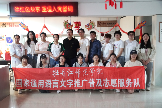 为推广普及国家通用语言文字,进一步提高社区居民普通话水平,强化社区居民的语言规范意识,牡丹江师范学院文学院语言文字志愿服务队于626日下午两点半走进园明社区,开展了以“迎红色七一,讲红色故事”为主题的语言文字推广活动。