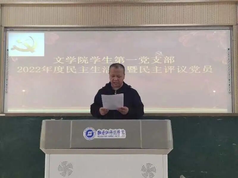 为深入学习贯彻落实党的二十大会议精神,用习近平新时代中国特色社会主义思想凝心铸魂,进一步提升基层党组织政治功能和组织能力,更好的发挥党组织战斗堡垒作用和党员先锋模范作用,文学院基层党支部于22日下午13:30开展2022年度民主生活会暨民主评议党员