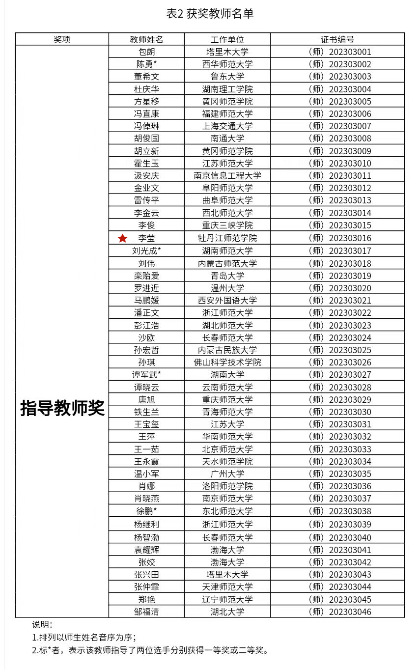 今年的“田家炳杯”共有499位选手参加了初赛,最终153位选手成功进入决赛,其中绝大部分选手都来自国内知名高校。李强同学在阮素芳老师和李莹老师的共同指导下,优化教学设计,更新教育理念,提高教学能力,在决赛中脱颖而出,赢得一等奖的佳绩。李莹老师也获得优秀指导教师的荣誉称号。