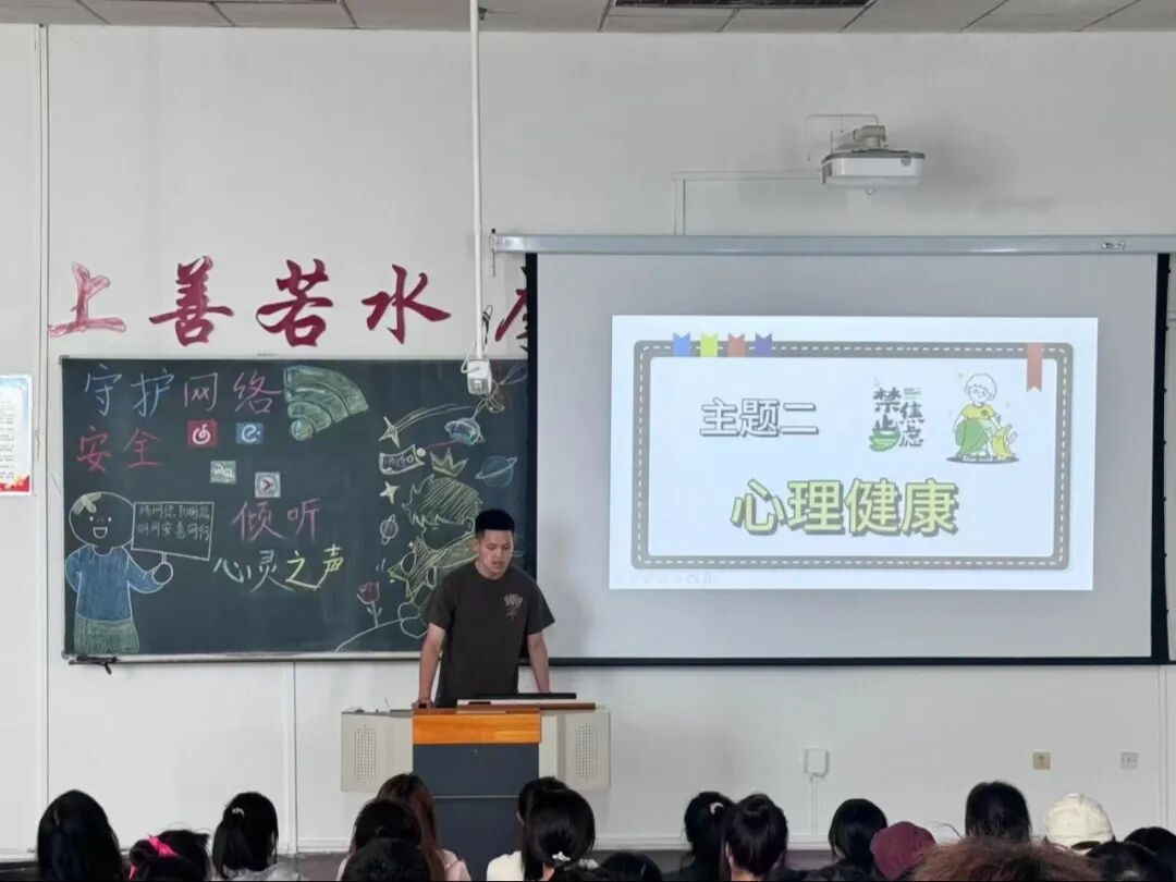 活动第一个环节为科普环节,各班级负责同学对心理健康知识进行了简单的讲解,使同学们对心理健康有了初步的认识。第二个环节为互动游戏,各班级组织开展了一系列丰富多彩的心理互动游戏:“滚雪球”“抢数字”“我有你没有”“压力纸飞机”……游戏过程中,部分班级同学还进行了歌曲、小品表演,为同学们带来了欢声笑语,释放了心理压力。第三个环节,各班辅导员老师对此次活动进行总结,引导学生树立正确的心理健康意识,向学生传授调解和应对压力的方法,为学生的心理健康和全面发展提供了支持。