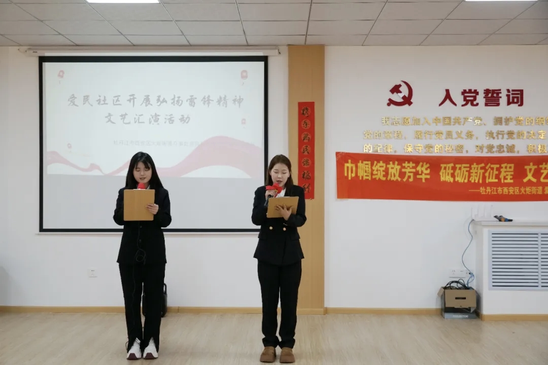 2. 声临其境:文苑连心志愿者创新编排诗朗诵《三月,为雷锋绽放》,运用多媒体技术打造时空对话场景;