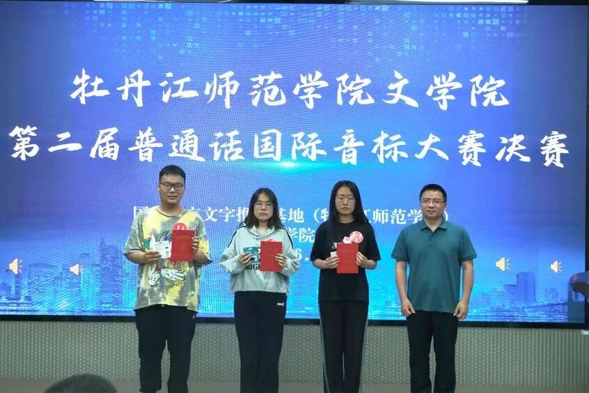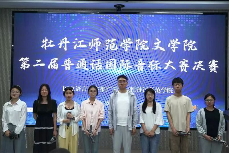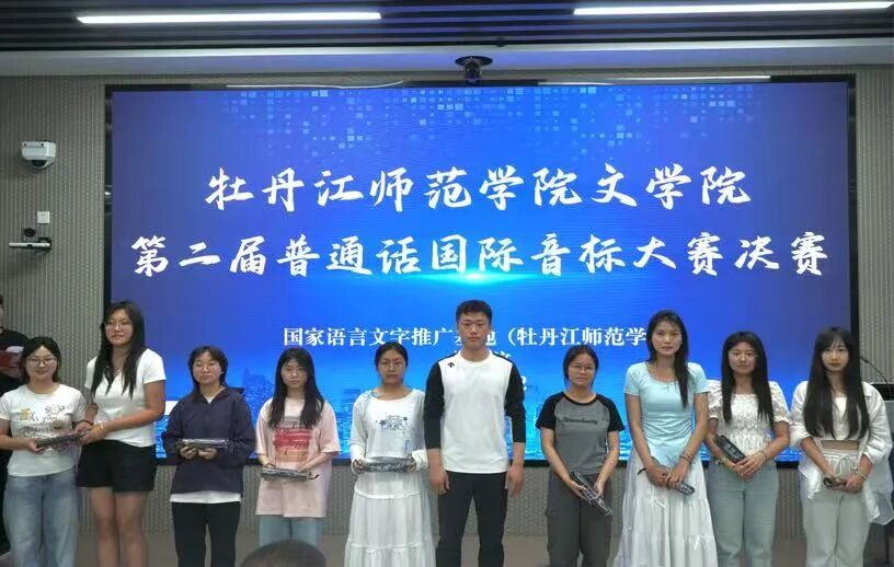 6月12日18时,牡丹江师范学院文学院于实训楼710成功举办第二届普通话国际音标大赛决赛。本次大赛旨在加强国家通用语言文字推广力度,提升普通话应用水平,充分发挥国际音标在普通话推广中的作用,通过“教-学-赛-用”一体化形式,激发大学生学以致用、多渠道全方位传承、传播国家通用语言和中华民族先进文化的热情。文学院副院长施新佳,汉语言系主任肖庆峰,现代汉语教研室主任张颖及汉语教研室金洪臣老师、丁雪老师和胡宗华老师,文学院辅导员马文宇老师出席本次大赛,大赛由张硕、丁雪主持。