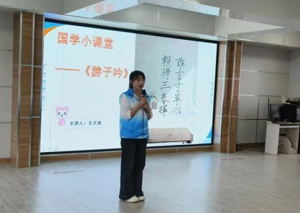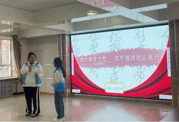 活动伊始,王艺涵和王天淇两位同学分别围绕“推普”和“国学”两大主题进行了精彩的宣讲。王艺涵通过一个情景短剧,让同学们深刻体会到了讲好普通话的重要性。王天淇同学通过经典篇目《游子吟》,展现了中华传统文化的独特魅力,提醒同学们铭记母恩。