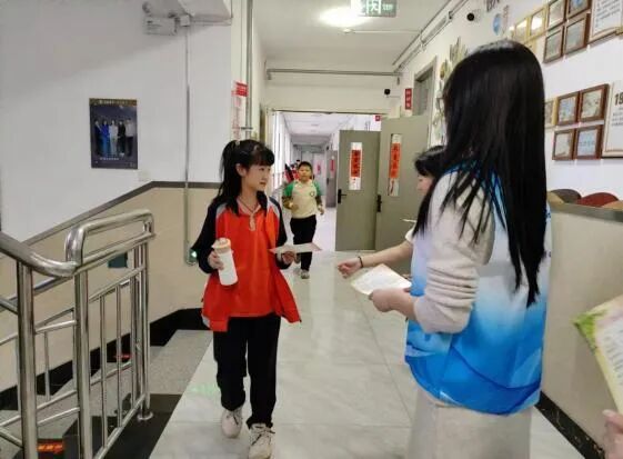 活动开始前,志愿者向新华小学的同学们派发宣传单,让同学们了解说好普通话的重要性。语言,作为文字与思想的载体,其规范使用如同一座桥梁,不仅消除了传播中的“误解”与“歧义”,让交流更加流畅,更在无形中成为了中华民族团结的纽带,在歌曲与诗文中书写着千年的华章。