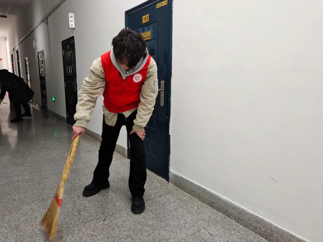 清扫卫生、擦去尘埃,迎接崭新的开始。全体志愿者积极投入,撸起袖子加油干。他们耐心地清扫办公室、教室、教学楼周边人行路等区域,做到“卫生无死角”,整个过程细致、有序。每一名志愿者都以实际行动共同为师生营造出一个干净、整洁、舒适的工作与学习环境,他们背后忙碌的身影,都诠释了真诚的劳动精神,凝聚着属于文院学子的阵阵暖意。