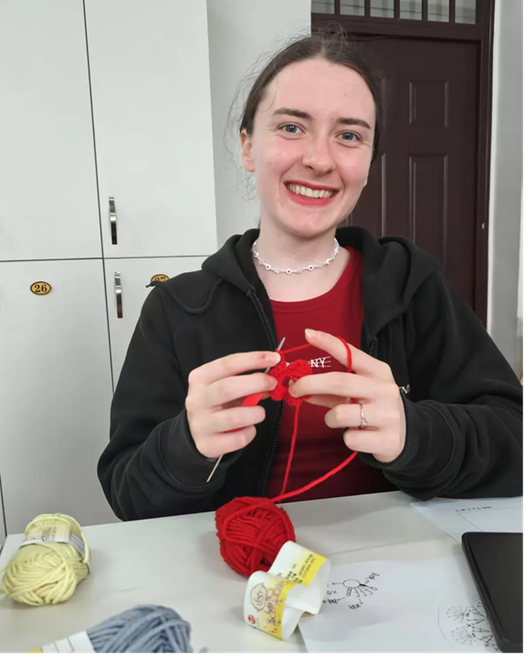 在老师的指导和鼓励下,留学生纷纷拿起钩针和毛线,开始尝试编织自己的作品。从最初的笨拙尝试到逐渐熟练,留学生们在钩织的过程中不仅感受到了中国传统手工艺的魅力,还获得了创作的乐趣和成就感。他们一边编织,一边交流心得,不时发出欢声笑语,现场充满了浓厚的文化氛围和友谊的温暖。