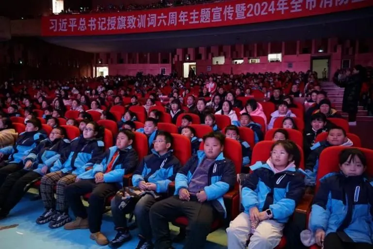 随后是《木兰辞》朗诵表演。新华小学的学生们用抑扬顿挫的语调,生动地讲述了花木兰代父从军的传奇故事。从“唧唧复唧唧,木兰当户织”的平凡生活,到“万里赴戎机,关山度若飞”的沙场征战,木兰的形象在朗诵声中逐渐鲜活,让观众深刻领略到了古代巾帼英雄的飒爽英姿与忠孝节义,也表达出古代女性的坚韧与担当。