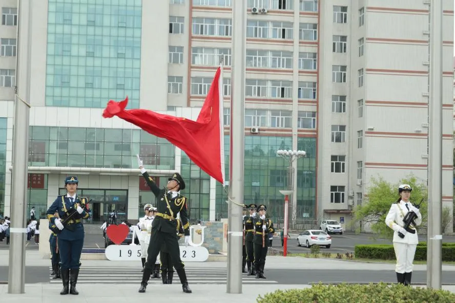 火红五月,朝阳初升。牡丹江师范学院国旗护卫队迈着整齐划一、铿锵有力的步伐走向升旗台。随着雄壮的国歌声响起,全体同学庄严肃立,高唱国歌,怀着对祖国的敬仰和热爱,凝视着鲜艳的五星红旗冉冉升起